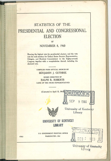 Statistics of the presidential and congressional election of … / compiled from official sources … under direction of … clerk of the House of Representatives. (OCLC #11573029)