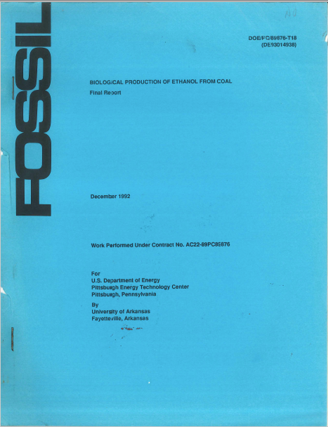 Biological production of ethanol from coal : final report / prepared by University of Arkansas, Department of Chemical Engineering. (OCLC #1056492628)