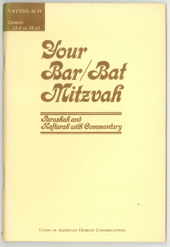 Your Bar/Bat mitzvah : Pareshah and Haftarah with commentary. Vayishlach, Genesis 32:4 to 36:43 / Union of American Hebrew Congregations. (OCLC #1002064723)