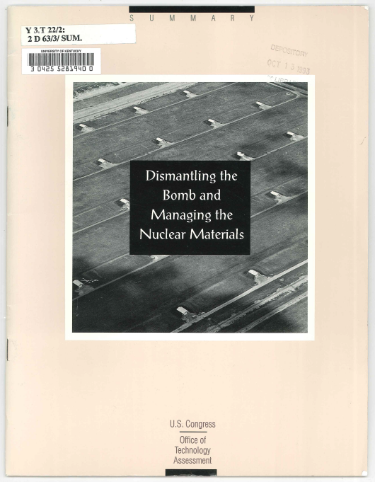 Dismantling the bomb and managing the nuclear materials : summary. (OCLC #29195498)