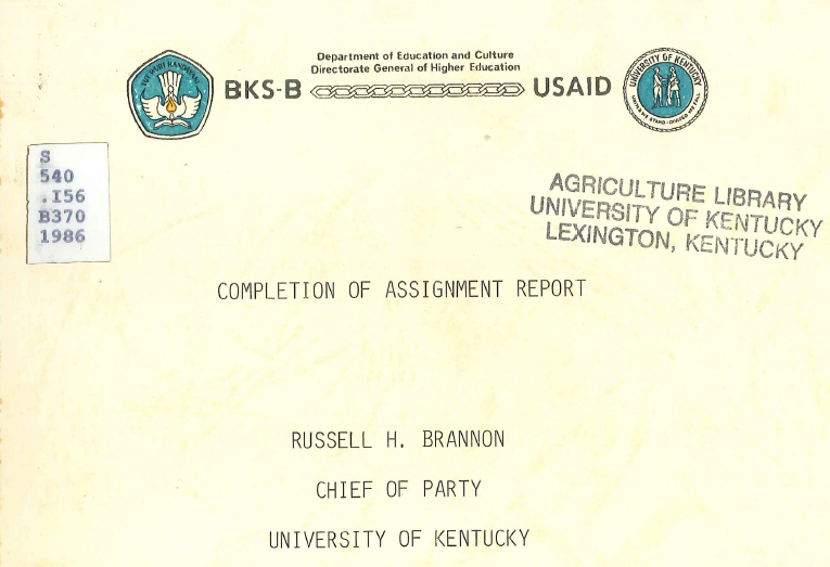 Completion of assignment report : July 1981-August 1986 / Russell H. Brannon. (OCLC #39501215)
