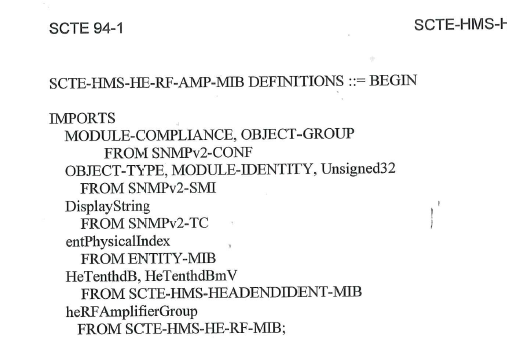 HMS common inside plant management information base (MIB) : SCTE-HMS-HE-RF-AMP-MIB / Engineering Committee, Hybrid Management Sub-layer Subcommittee, Society of Cable Telecommunication Engineers. (OCLC #953963863)